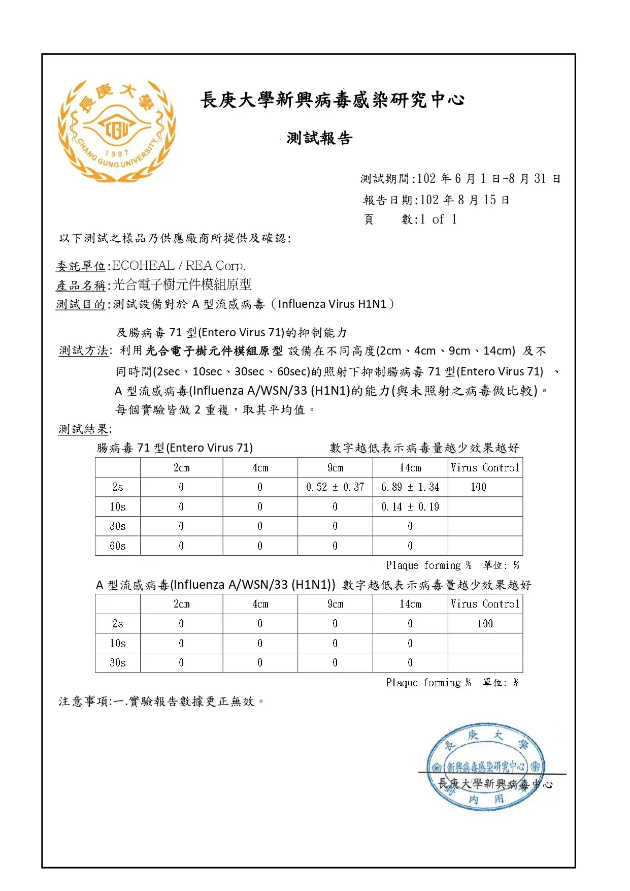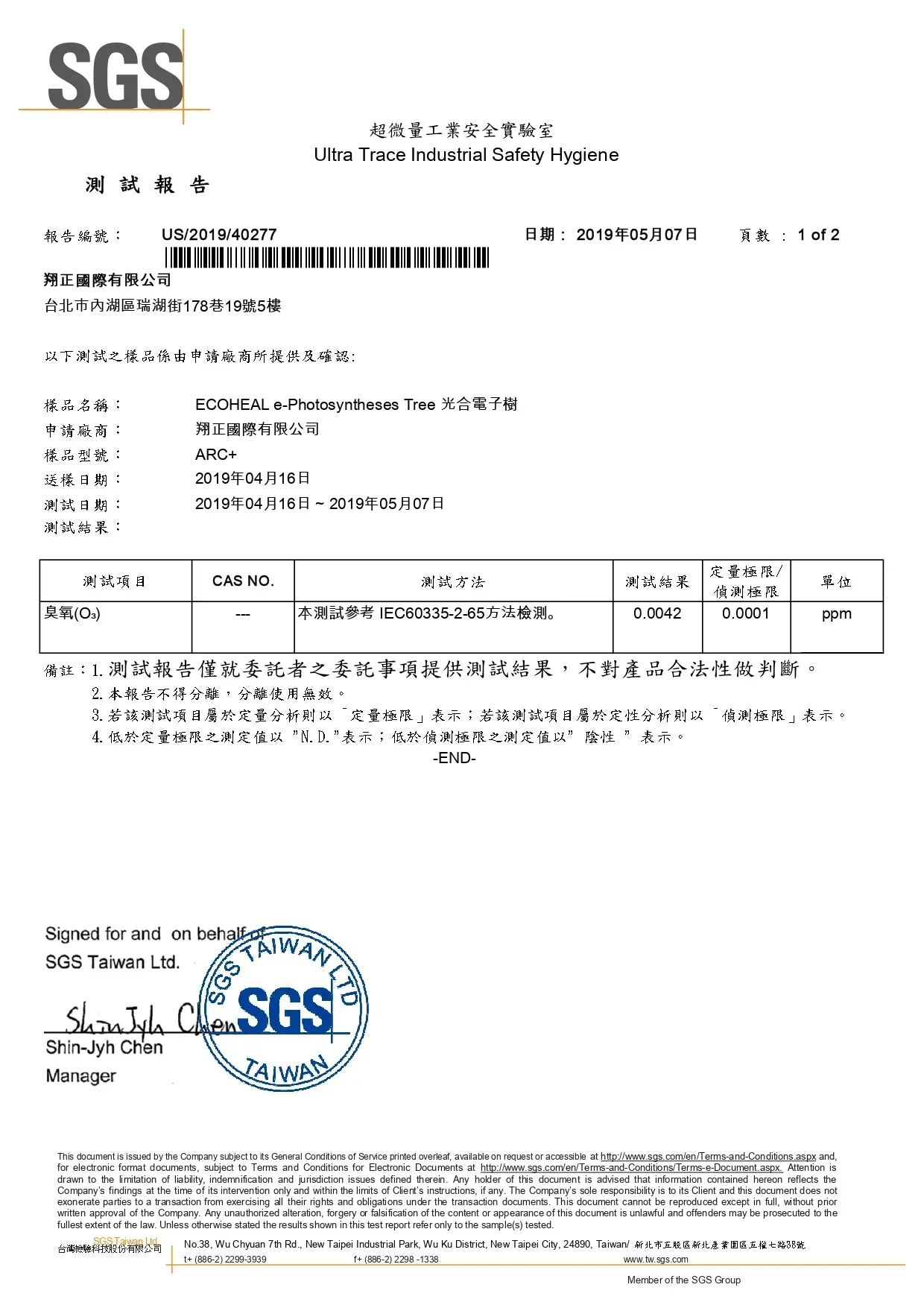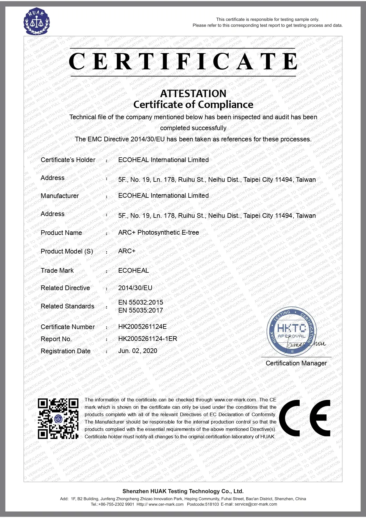 CQCCNASBSMI No.: R36235SGS Dust Removal Test ReportSGS Formaldehyde Removal Test ReportSGS Total Volatile Organic Compounds Removal Test ReportTaiwan Power Research and Testing Center Ozone Test ReportMing-Chi University of Science and Technology Staphylococcus aureus Extinction Test ReportGuangdong Microbiology Analysis and Testing Center Sterilization Test ReportGuangdong Microbiology Analysis and Testing Center TVOC Test ReportGuangdong Microbiology Analysis and Testing Center PM2.5 Test ReportGuangdong Microbiology Analysis and Testing Center Ozone Concentration Test Report