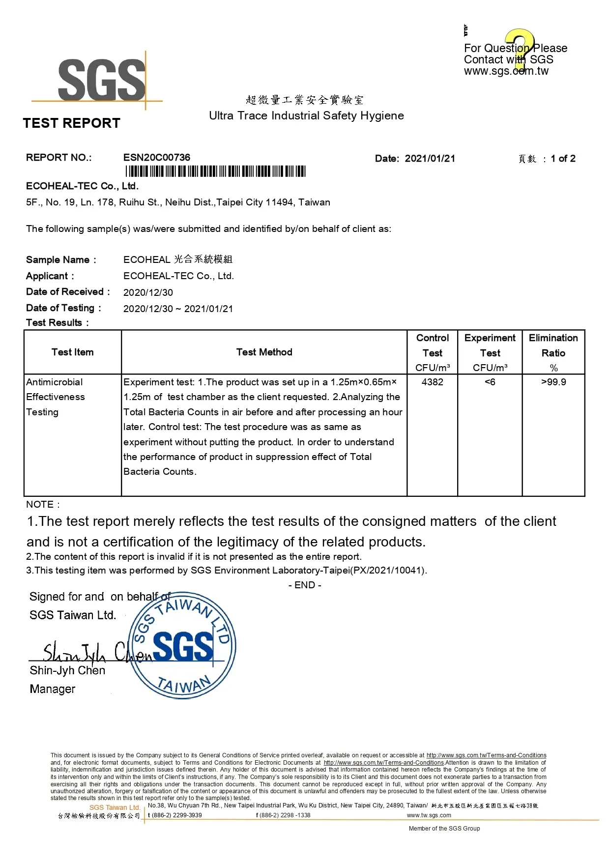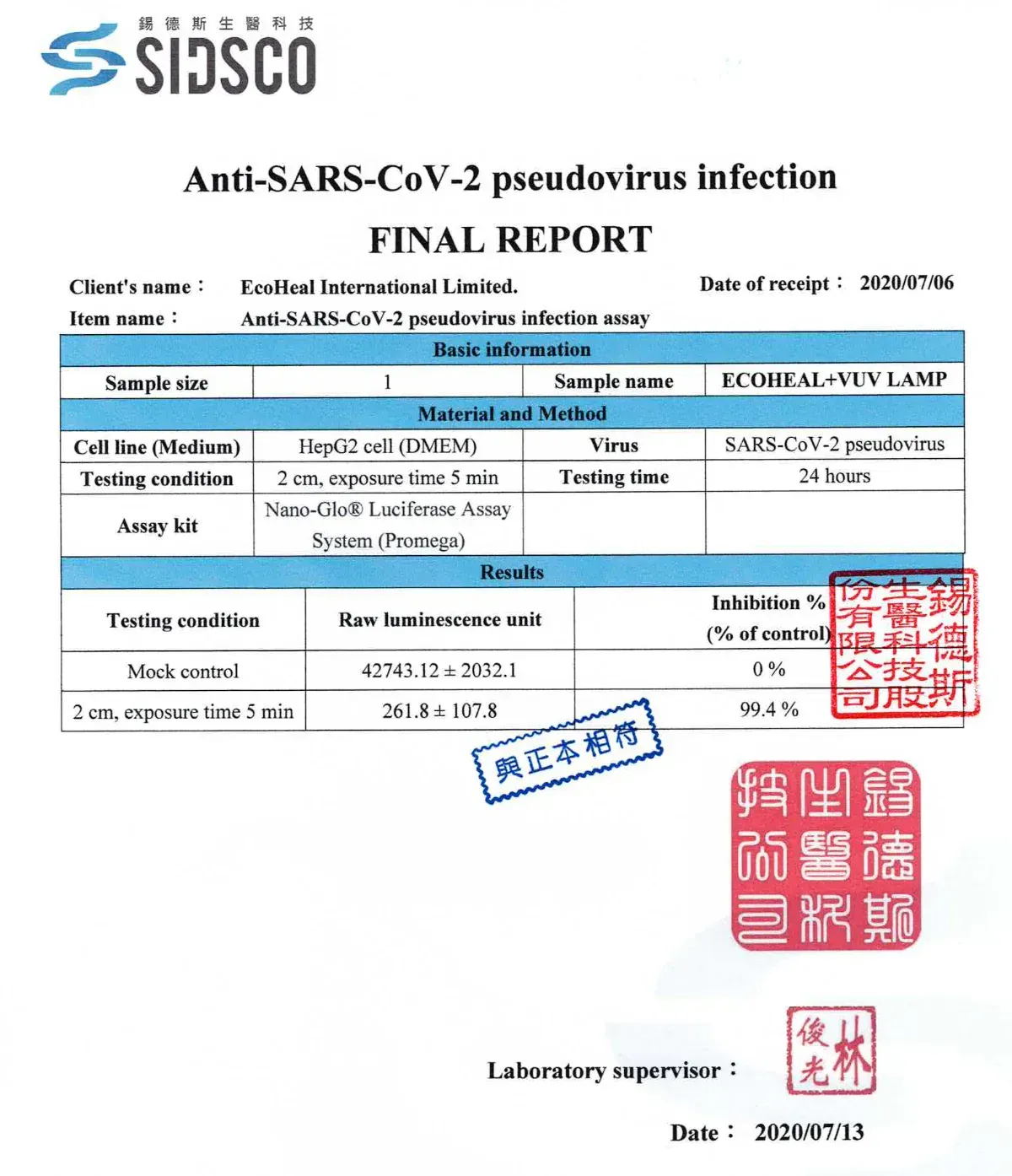 - Under the protection of ECOHEAL air purification systems, the PHIT™ technology demonstrated a sterilization efficacy of up to 99%.