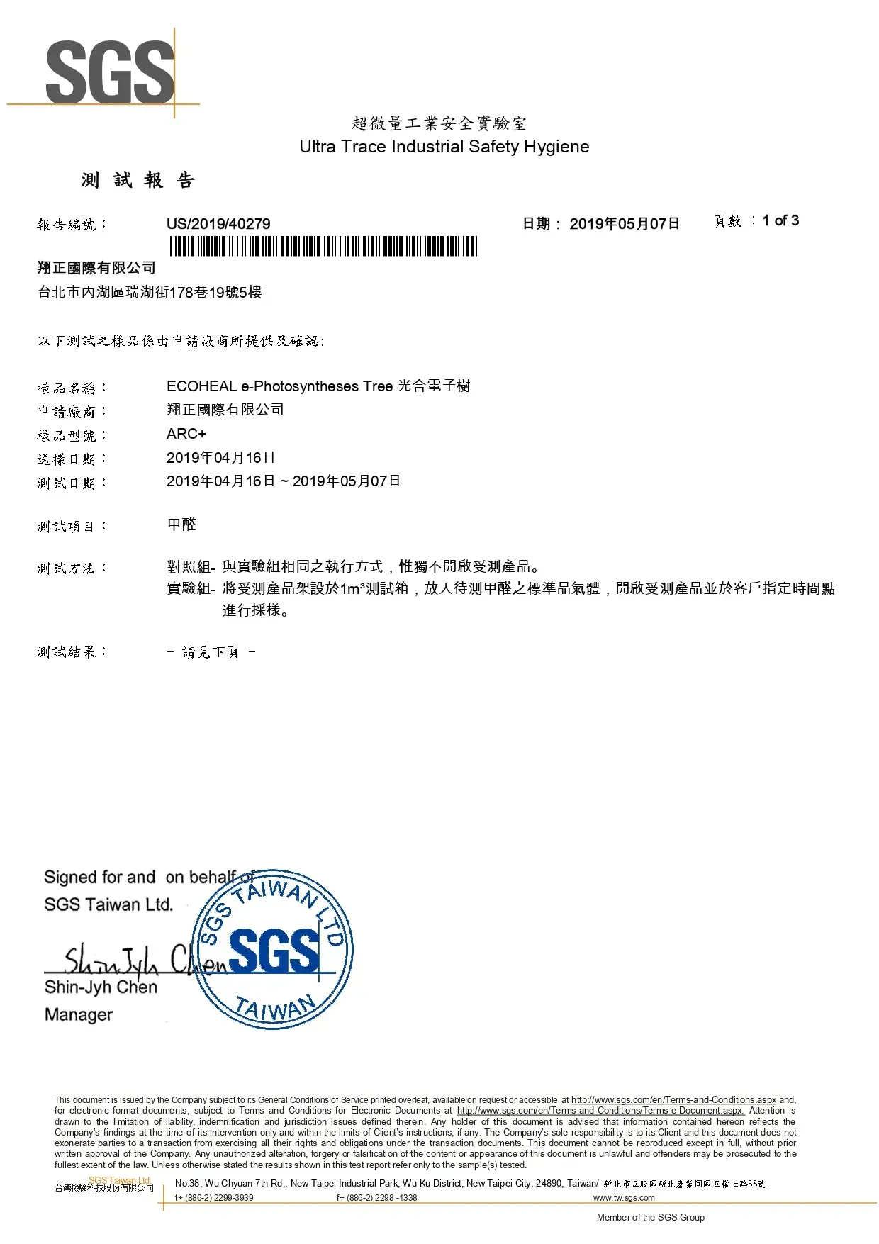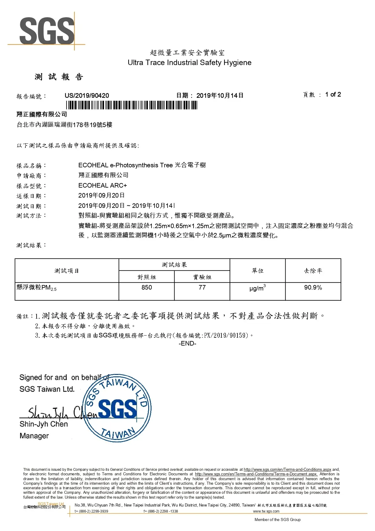 SGS Air Bacteria Removal Test, SGS Dust Removal Test (PM2.5), SGS Formaldehyde Removal Test, SGS Ozone Test Report